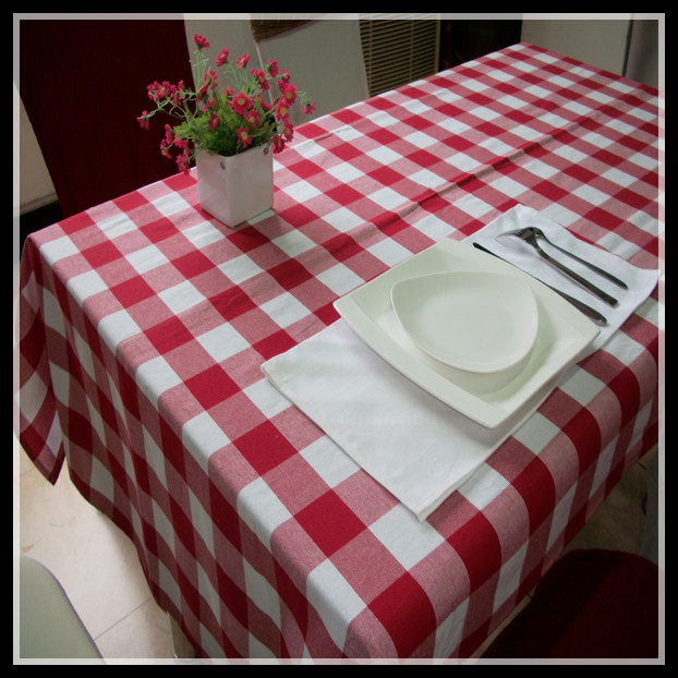 100% cotton yarn dyed white and red checked table cloth