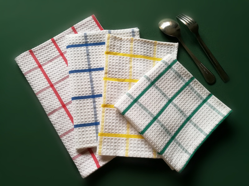 | 100% cotton waffle yarn dyed green/yellow/blue/red check tea towel/kitchen cloth 40x70cm |