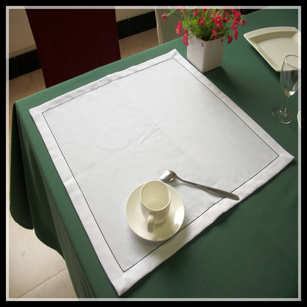 Spun polyester white table napkin with embroidery line and mitred corner design